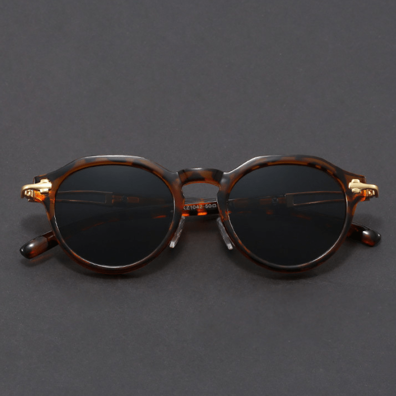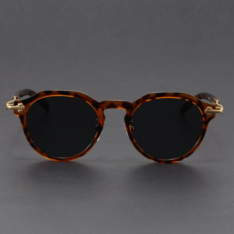 • Frame Style: Full-frame round silhouette with geometric detailing.