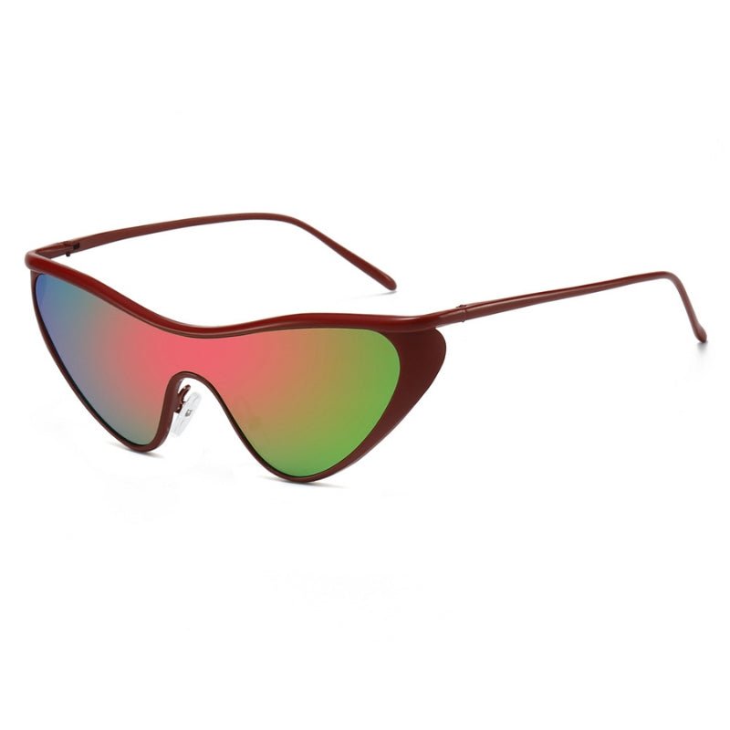 • Striking Shield Design: Cat-eye wrap-around frame for a modern, streamlined fit.