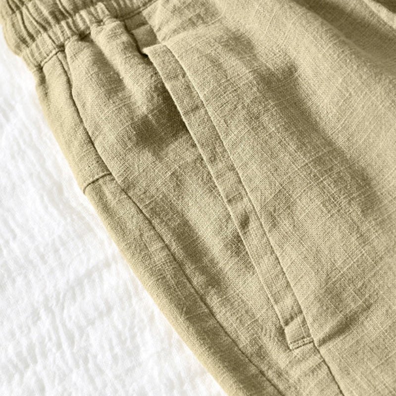 Crafted from a breathable blend of ramie and cotton, the Julian Cropped Pants offer a relaxed fit with clean structure and an easy drape. The cropped cut, soft pleating, and elastic waist deliver everyday comfort with a refined edge. Ideal for warm weather or transitional layering.