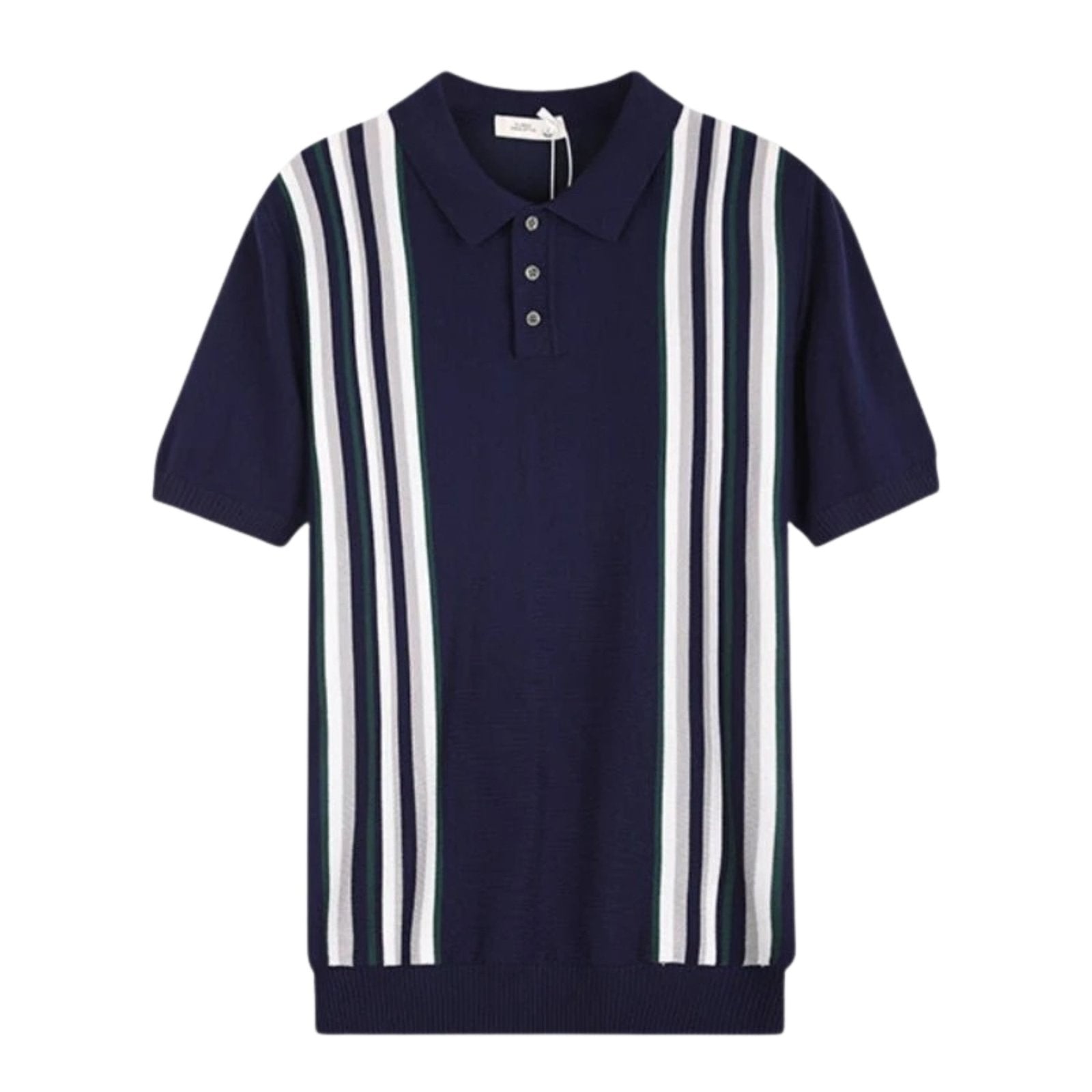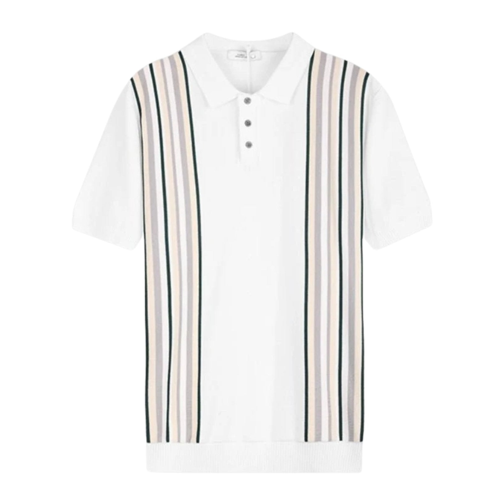 The Renner Polo brings together mid-century design cues and a modern knit structure. With a soft, breathable viscose blend and bold vertical stripe panels, it offers a balanced silhouette and subtle texture. The structured collar and three-button placket round out a look that’s equal parts relaxed and refined—ideal for transitional dressing.