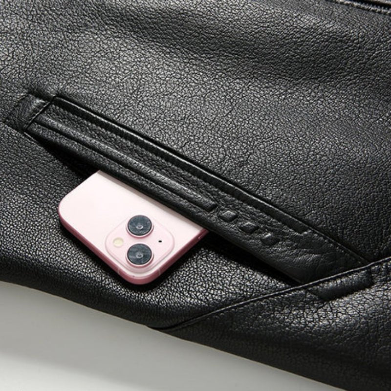 Designed for warmth and everyday protection, this jacket delivers insulated comfort with a structured, durable feel. Made from 100% cowhide leather, it features a smooth genuine leather exterior and a plush faux fur lining for reliable cold-weather coverage. A zip-front closure, detachable-look fur collar, and clean panel construction give it a sharp, functional profile suited for daily wear and travel.