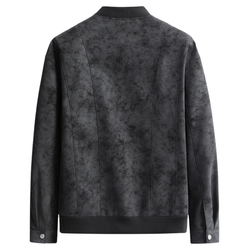 Designed for everyday comfort and easy layering, this bomber jacket delivers a clean, structured look with reliable warmth. Made from 100% polyester, it features a soft, suede-like surface with a smooth inner lining for comfortable wear. Ribbed collar and cuffs help lock in warmth, while the snap-button front and streamlined seams keep the silhouette sharp and versatile for casual or smart-casual outfits.