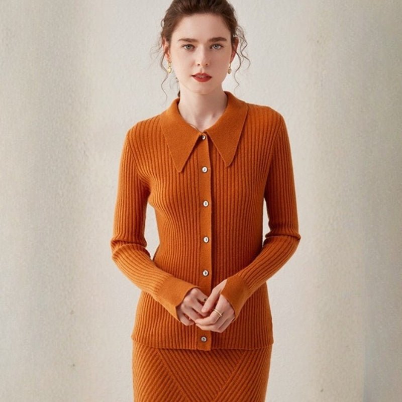 Designed for soft warmth and everyday comfort, this cashmere cardigan offers natural insulation with a light, breathable feel. Crafted from 100% cashmere, it drapes smoothly against the body while maintaining gentle structure. The fine rib knit enhances flexibility, while the button-front closure and pointed collar add a clean, polished finish suitable for relaxed or refined layering.