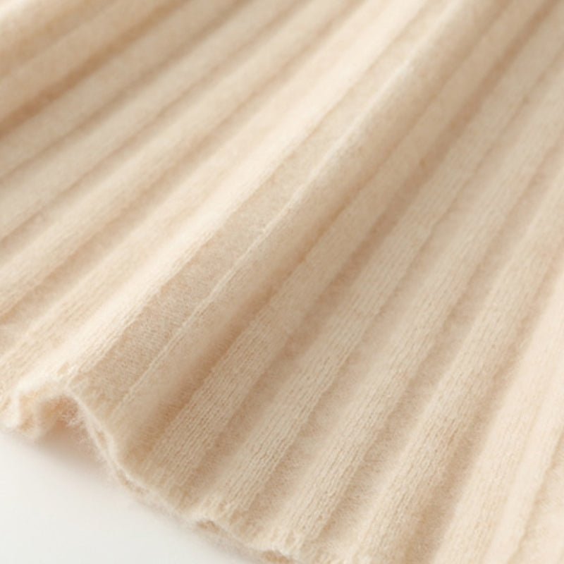 Designed for everyday comfort and easy movement, this ribbed knit skirt offers soft warmth with a fluid drape that moves naturally as you walk. Made from a 90% wool and 10% cashmere blend, it balances insulation with a smooth, gentle hand feel. The elastic waistband provides a secure, flexible fit, while the fine rib texture creates subtle structure and visual depth for versatile styling.
