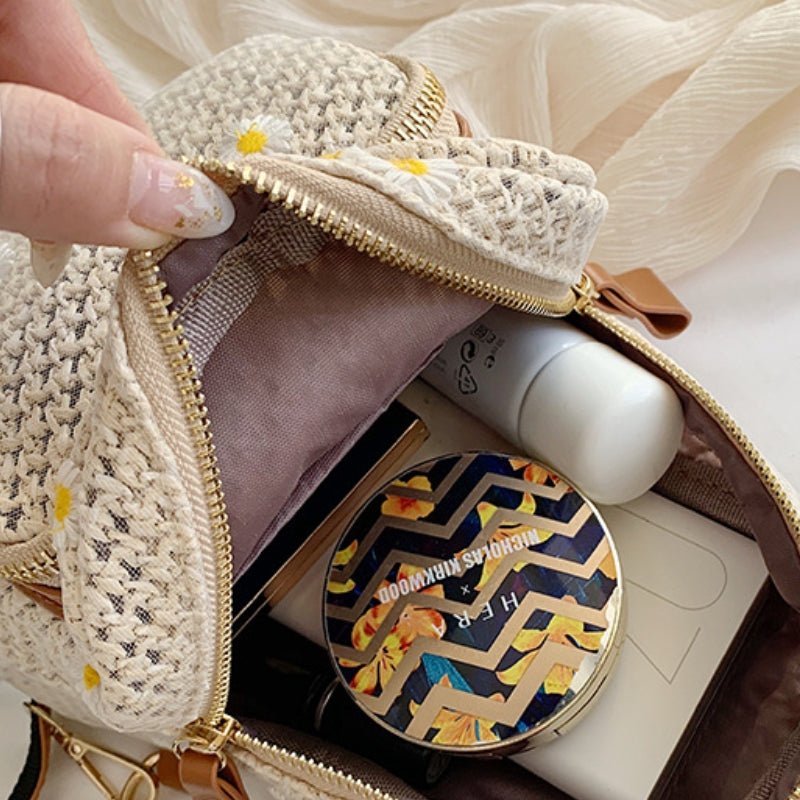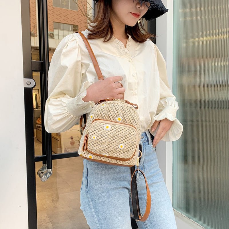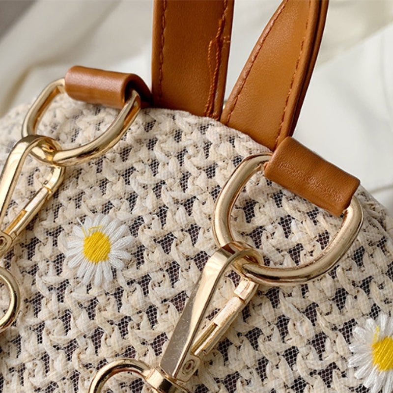 The Meadowloop Mini Backpack brings together breezy texture and everyday practicality. Crafted from a woven straw-blend fabric with daisy embroidery, it adds a playful, relaxed feel to any outfit. Featuring faux leather accents, gold-tone hardware, and a thoughtfully compact shape, it’s ideal for light travel, city outings, or weekend strolls.