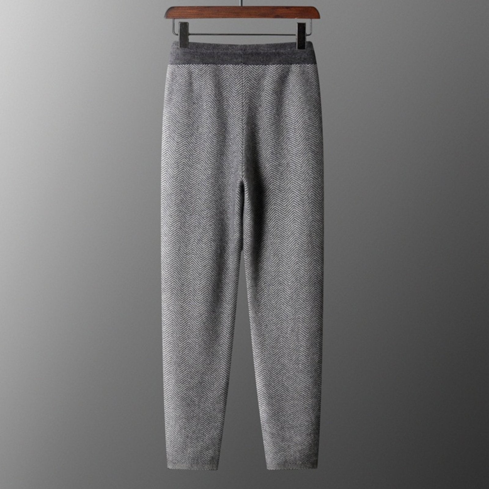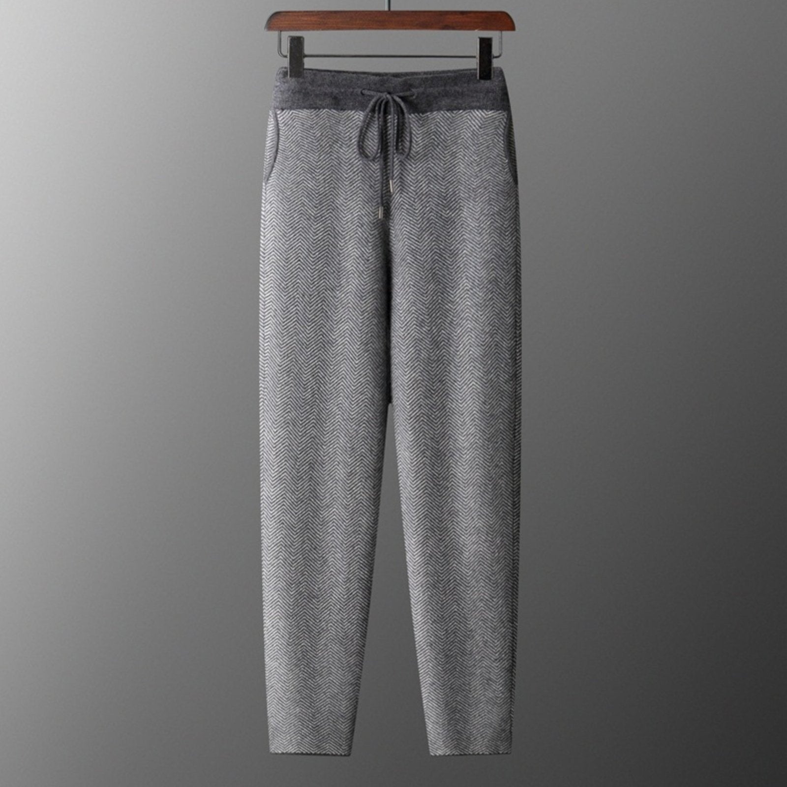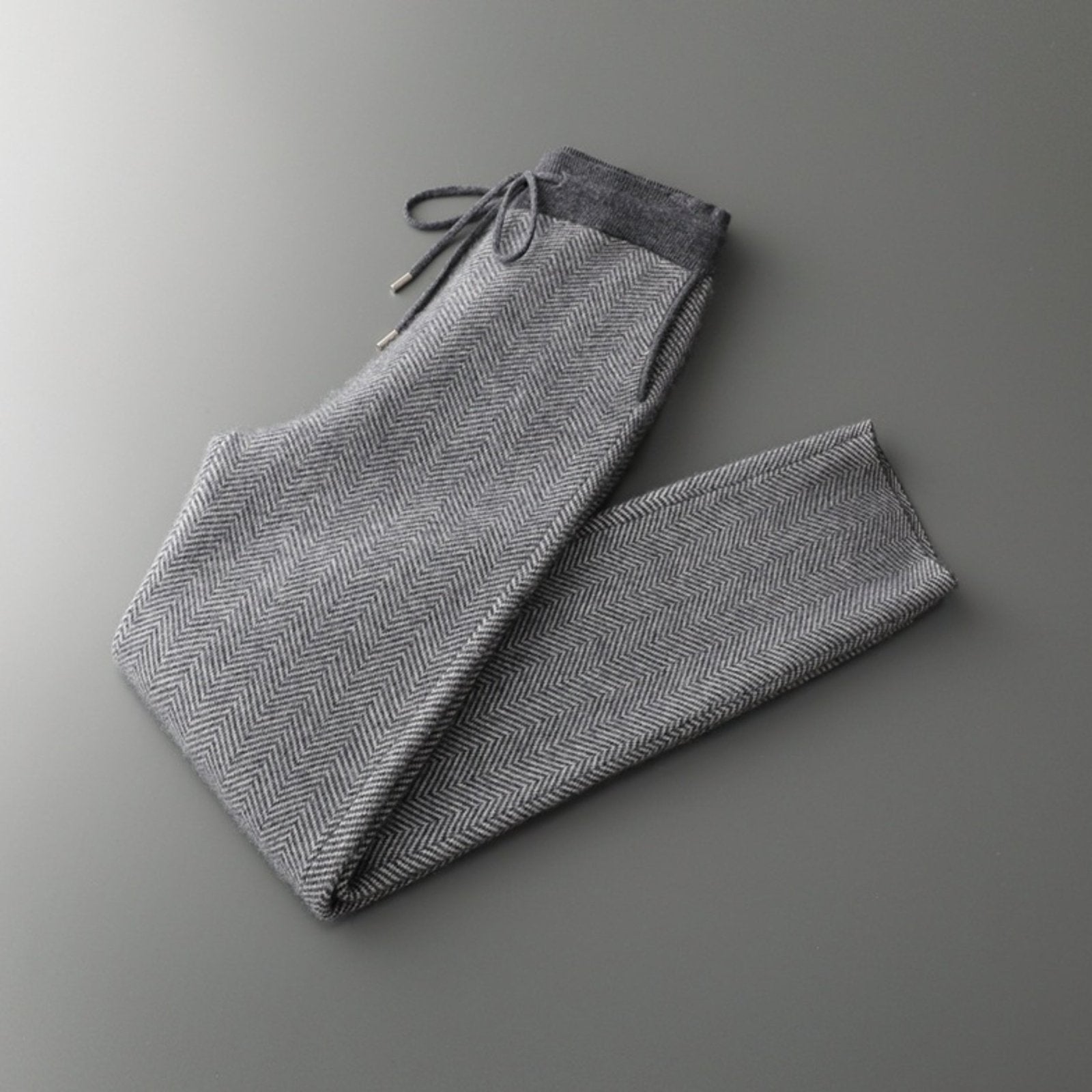 These joggers offer soft, insulating comfort with natural breathability for everyday wear. Made from 100% wool, they feature a herringbone knit pattern and a contrast waistband with adjustable drawstring. Side pockets and tapered legs provide a clean, functional fit that moves with you. The material delivers moisture-wicking properties and odor resistance.