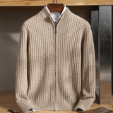 The Indigo Ridge Merino Wool Zip is crafted from 100% premium merino wool, offering unparalleled softness, breathability, and warmth. Designed with a textured knit pattern and a full zip closure, it exudes a blend of modern elegance and functional comfort. Its high collar and tailored fit make it a versatile layering piece, ideal for casual or formal settings.